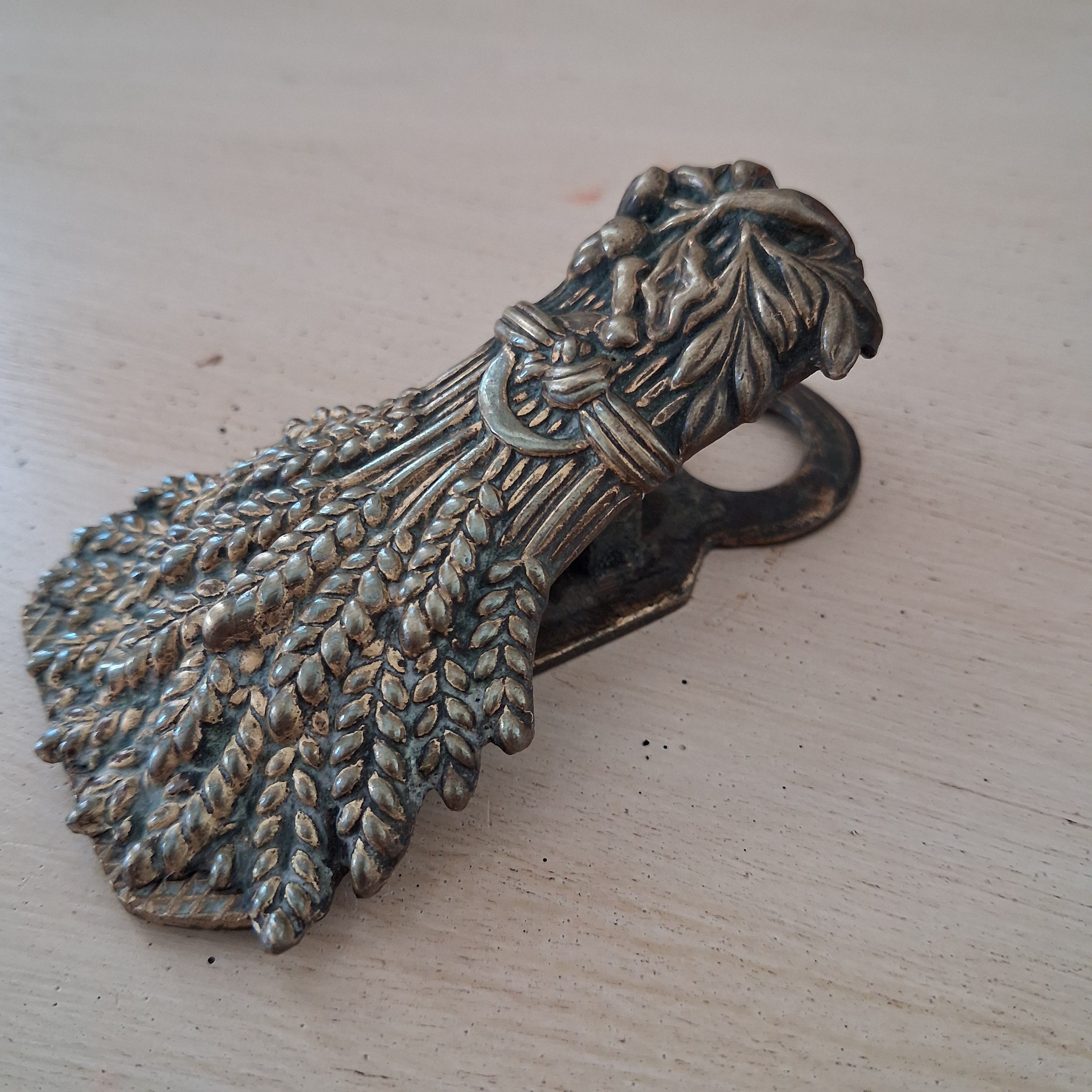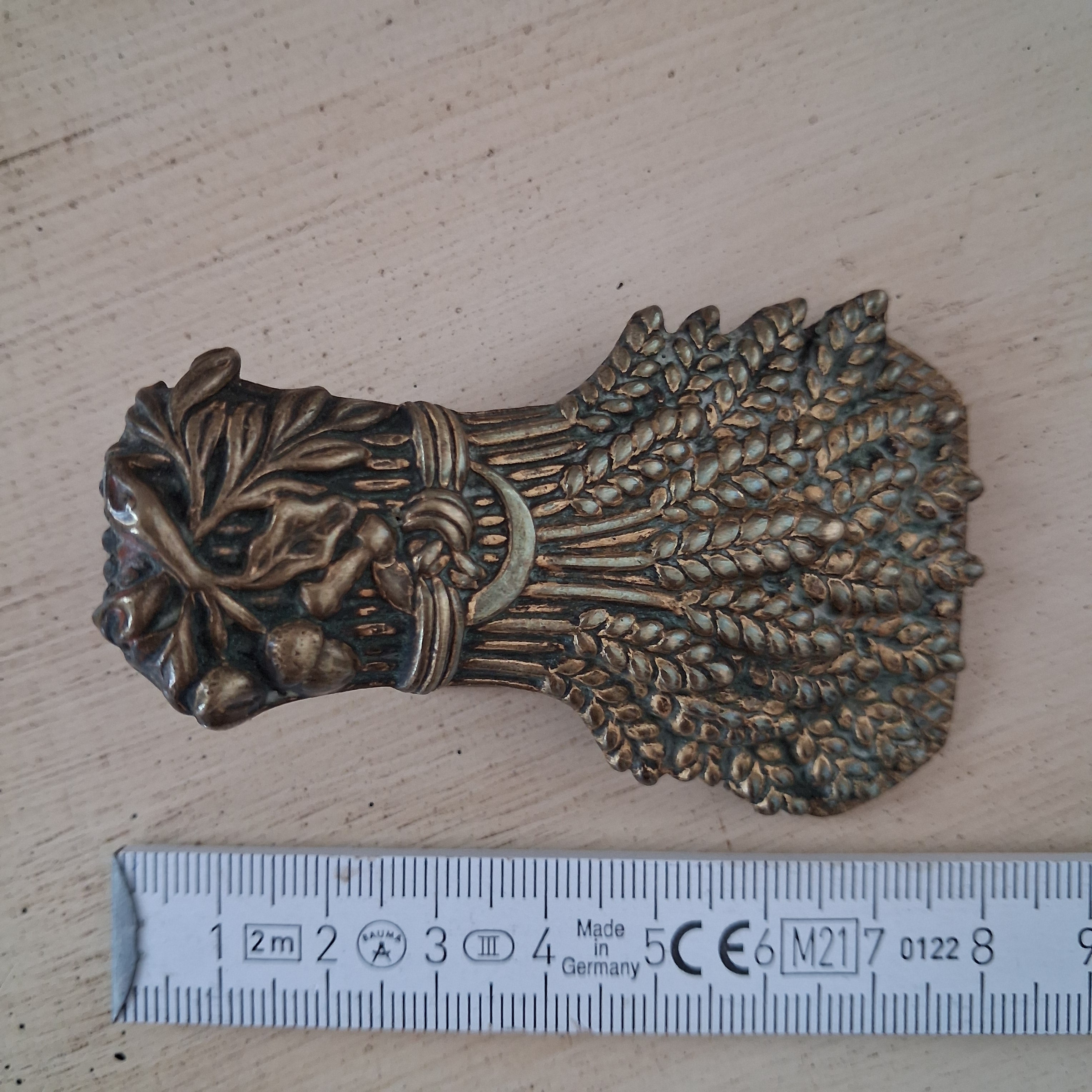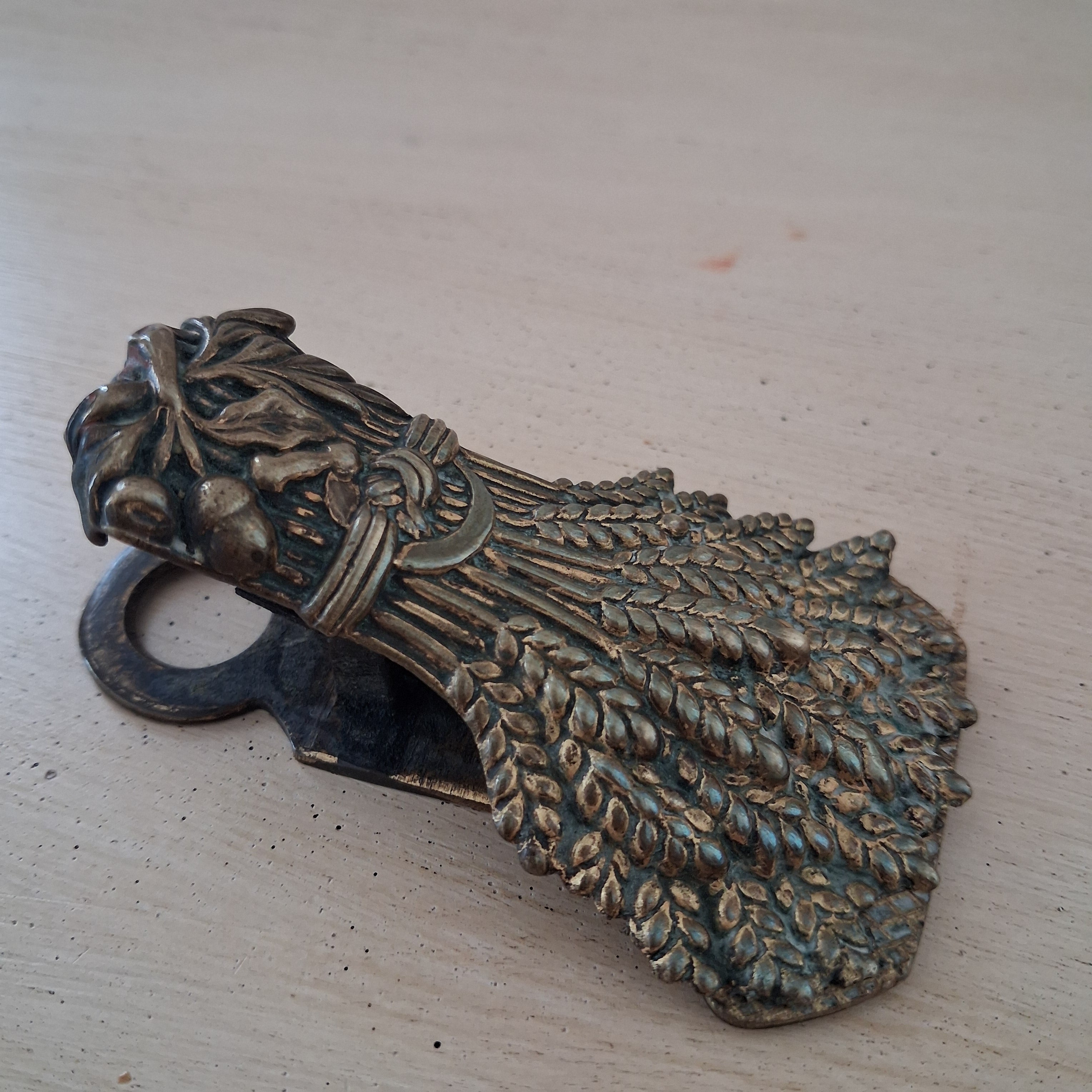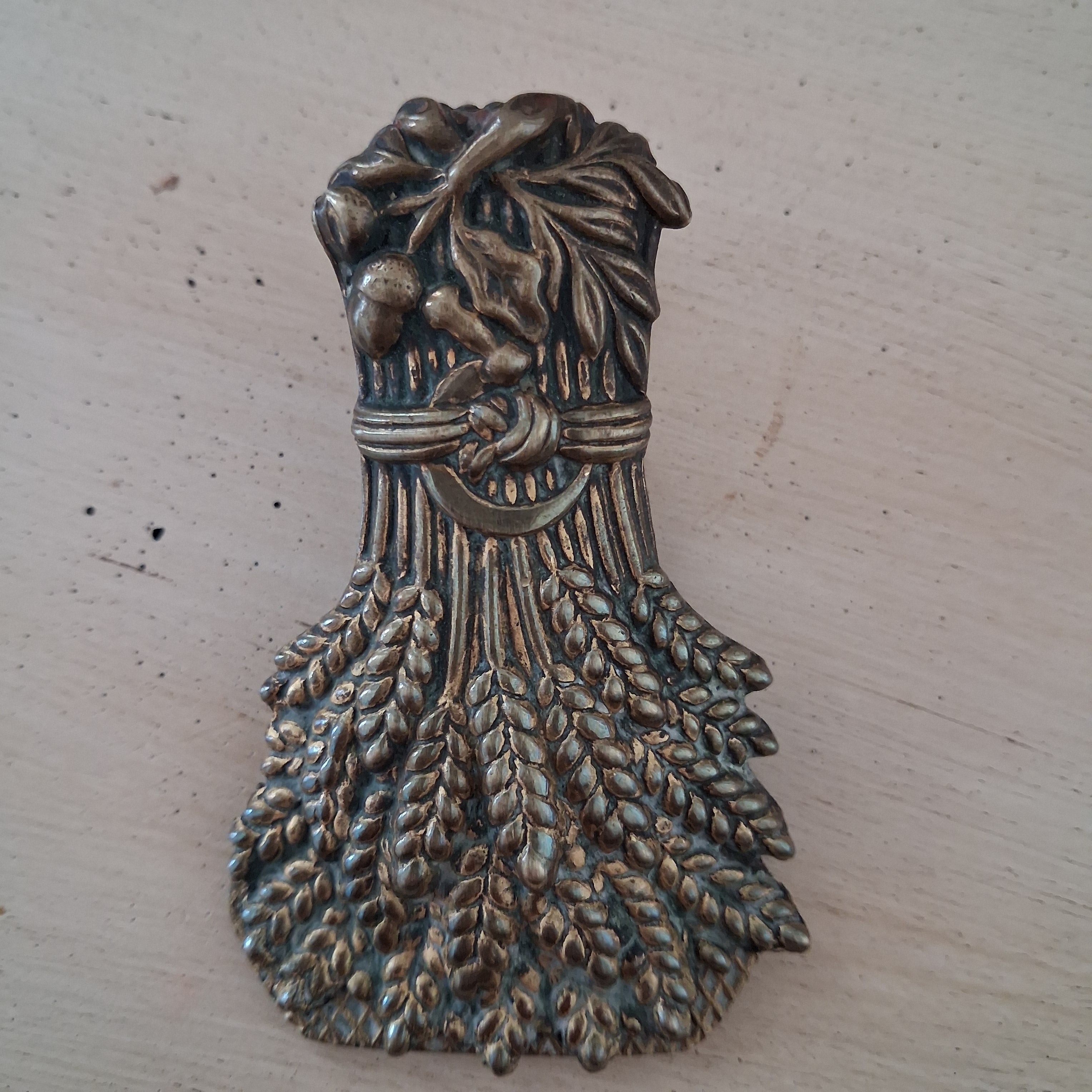 Antike Jugendstil Papierklammer aus Messing – Briefhalter mit Garbenmotiv